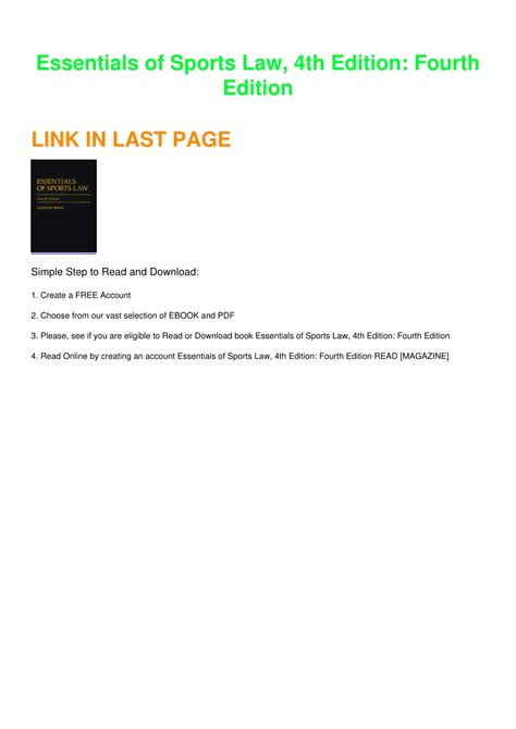 Pdf Download Pdf Essentials Of Sports Law 4th iBooks PDF